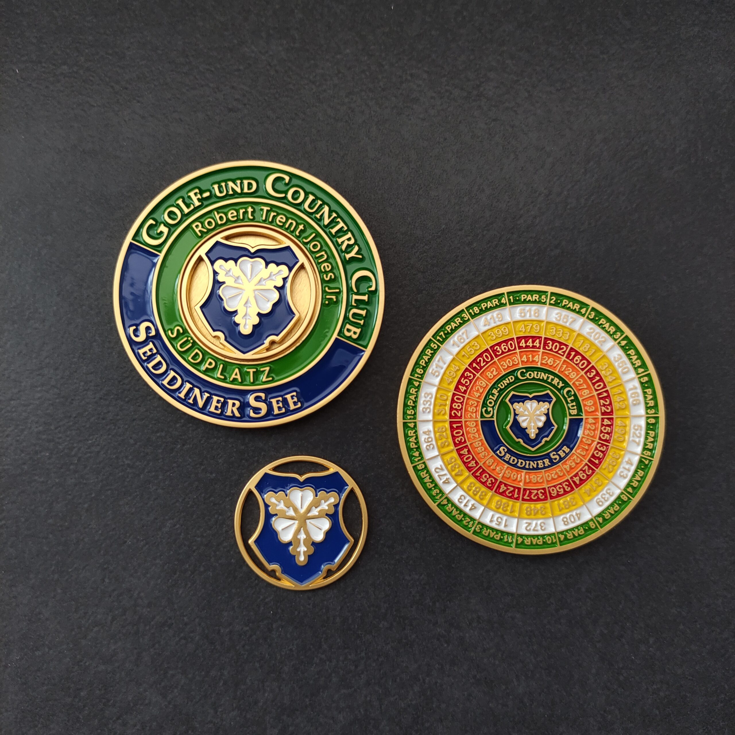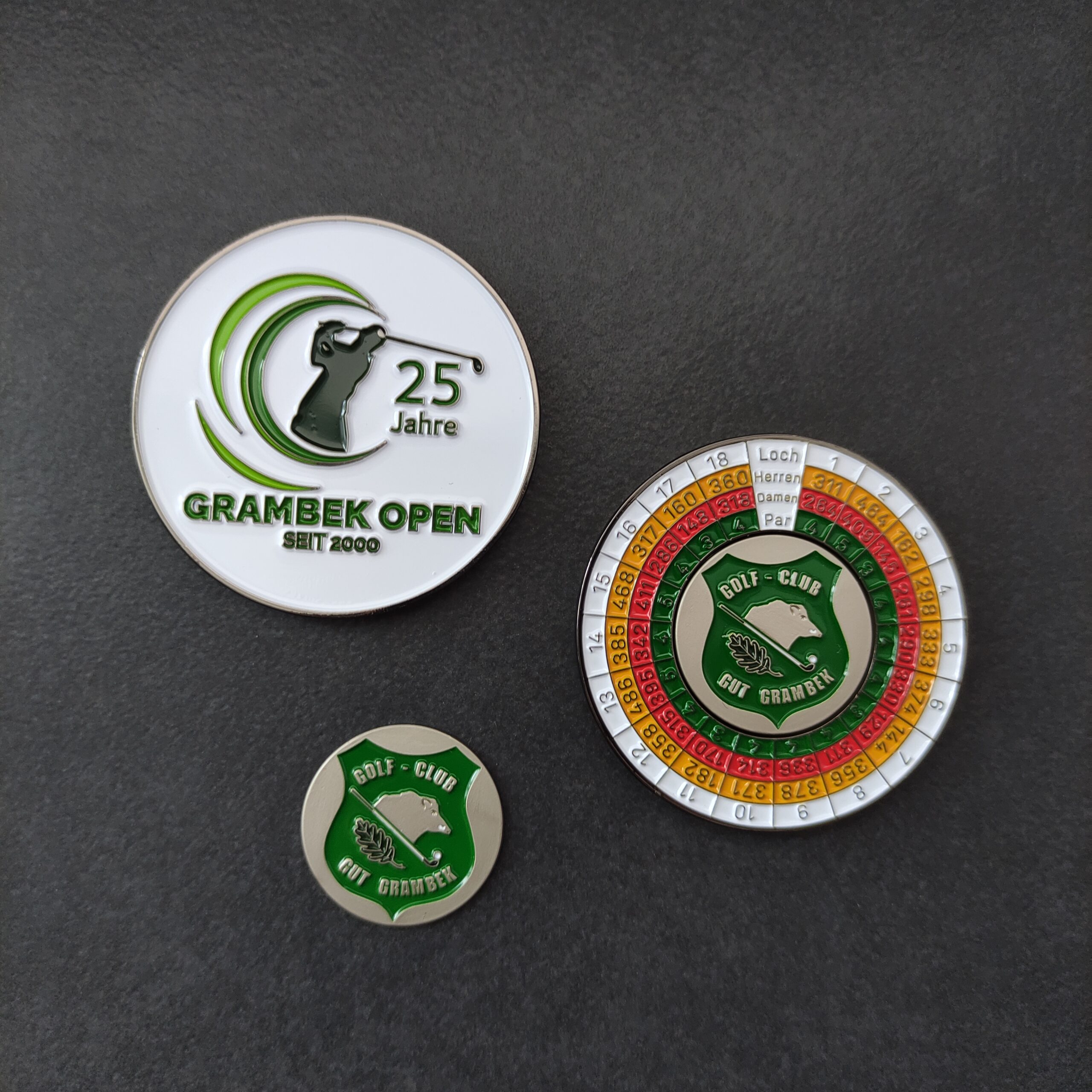 Unsere Course Standard Coins erfeuen sich wachsender Beliebtheit. Diese hochwertigen Metallmünzen aus der clubtags PREMIUM Line haben einen Durchmesser von 50mm und einen integrierten Ballmarker, der mit einem Magneten befestigt wird. Beide Seiten der Münze können individuell gestaltet werden. Dies ist ein zeitgemäßer und hochwertiger Artikel für Clubs und Sponsoren. Lassen Sie sich von unseren Referenzen inspirieren! Weitere Details und Preise finden Sie unter diesem Link. https://www.clubtags-shop.de/produkt/course-standard-coins/
